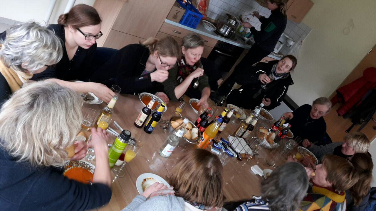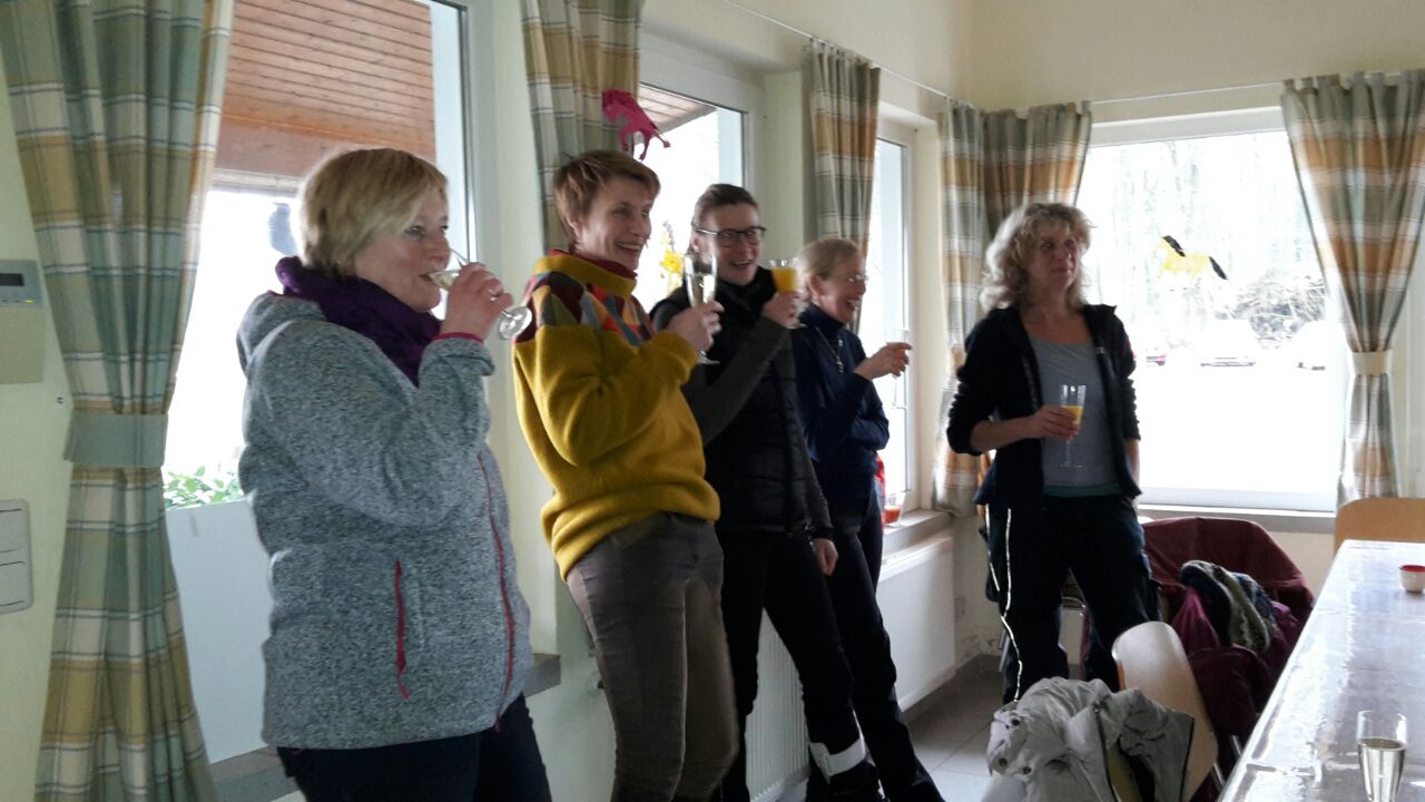 Der Wettergott war uns günstig gestimmt und so blieb es nach den ganzen Regenfällen der vergangenen Wochen trocken und es zeigte sich sogar mal die Sonne. Angeführt von Judith Große-Hartlage kamen wir nach schönen Töltstrecken gutgelaunt wieder am Vereinshaus an. Dort konnten dann alle gestärkt nach 2 leckeren Suppen, gekocht von Judith, und einem Glas Sekt in den Samstagnachmittag gehen. Danke an Tanja und Judith für die gute Organisation und leckere Verpflegung.
