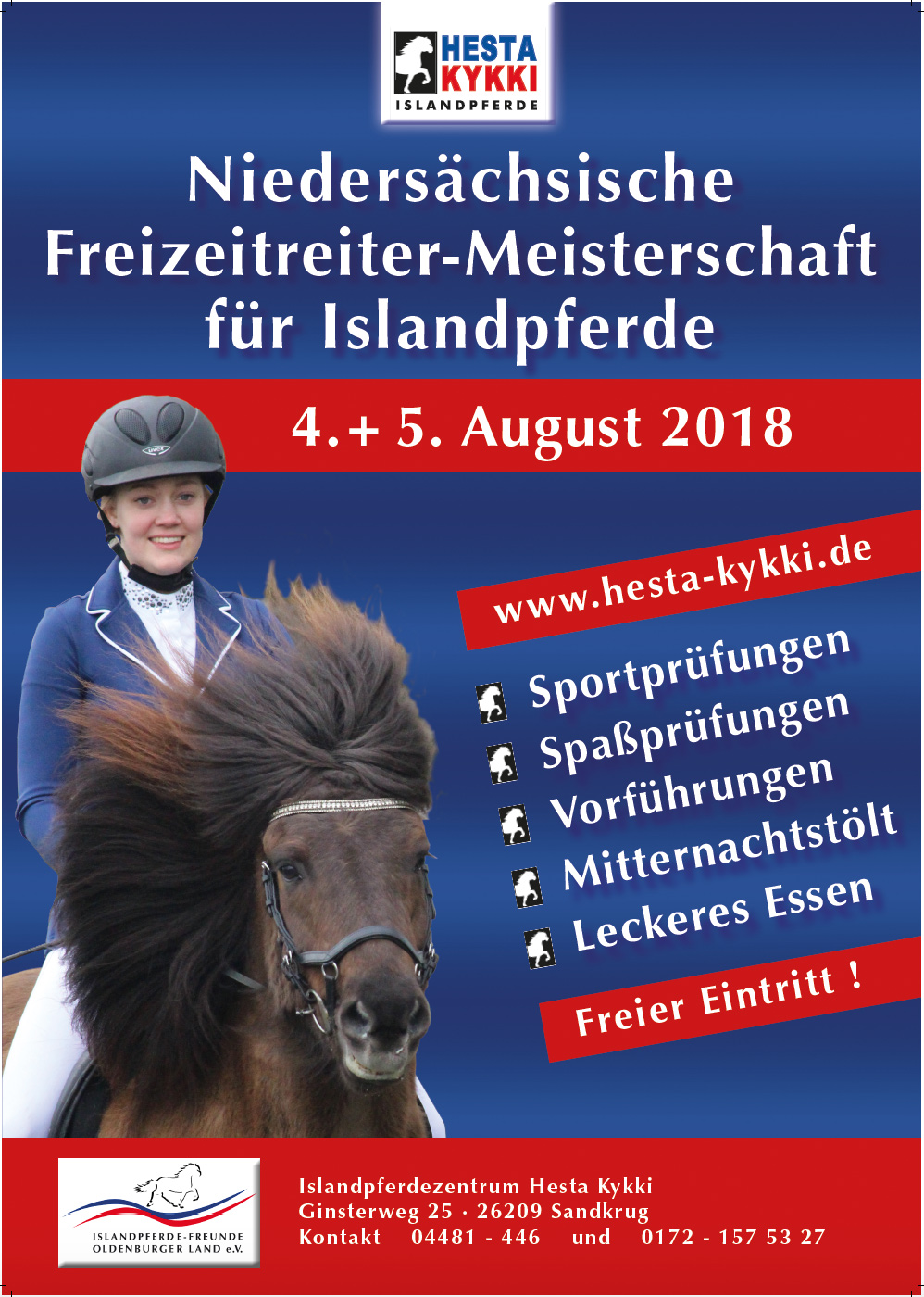 Zum ersten mal richten die Islandpferde Freunde Oldenburger Land e.V. ein Turnier aus und zwar die "Niedersächsische Freizeitreiter-Meisterschaft für Islandpferde".