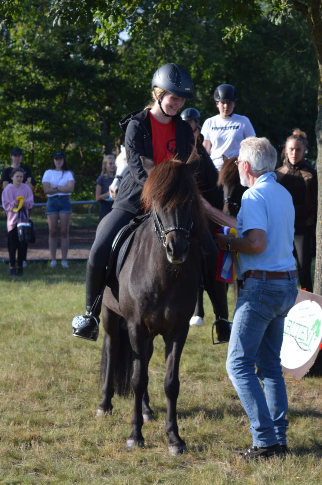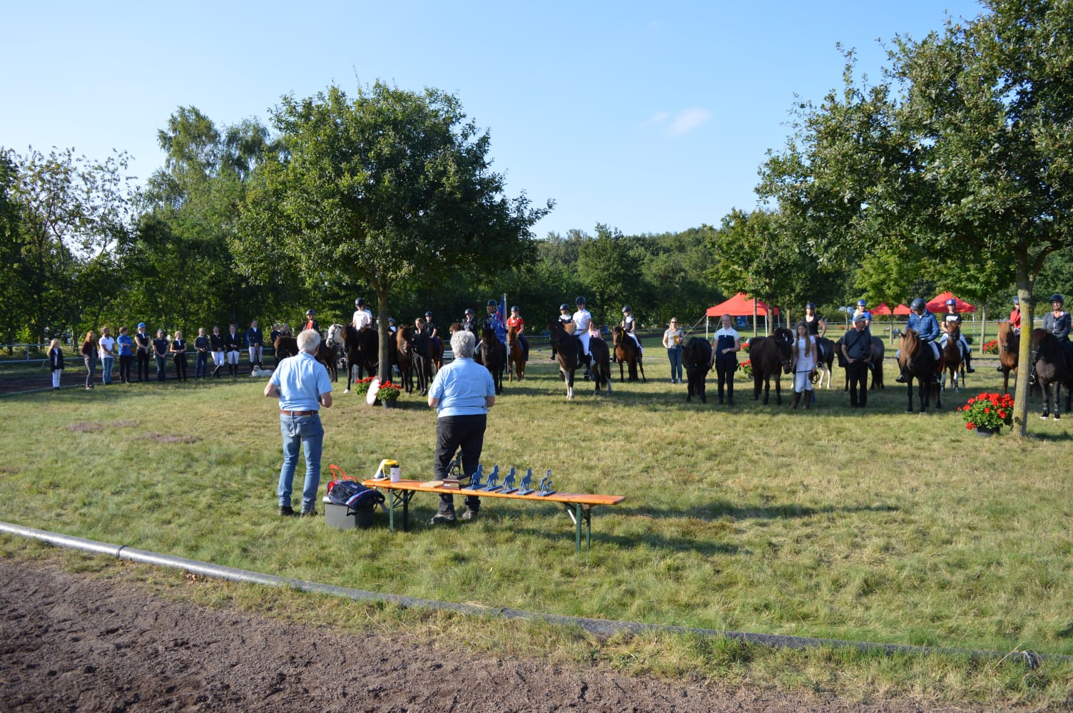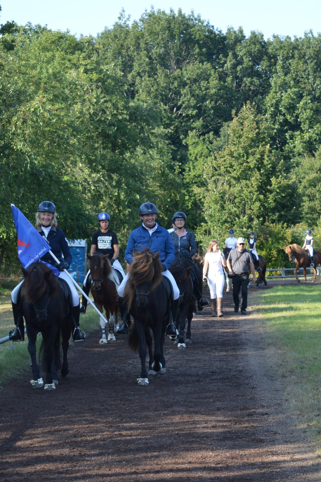Bei der Abschlussparade, an der noch 70 Reiter/innen teilnahmen, wurden Dankesworte ausgesprochen für das vorbildliche Verhalten der Reiter/innen, der konzentrierten Arbeit des Richterteams, an die Personen auf der Nennstelle sowie an das gesamte Helferteam des IPWN.